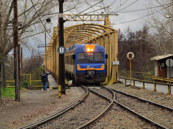 Поезд UT-593 на мосту